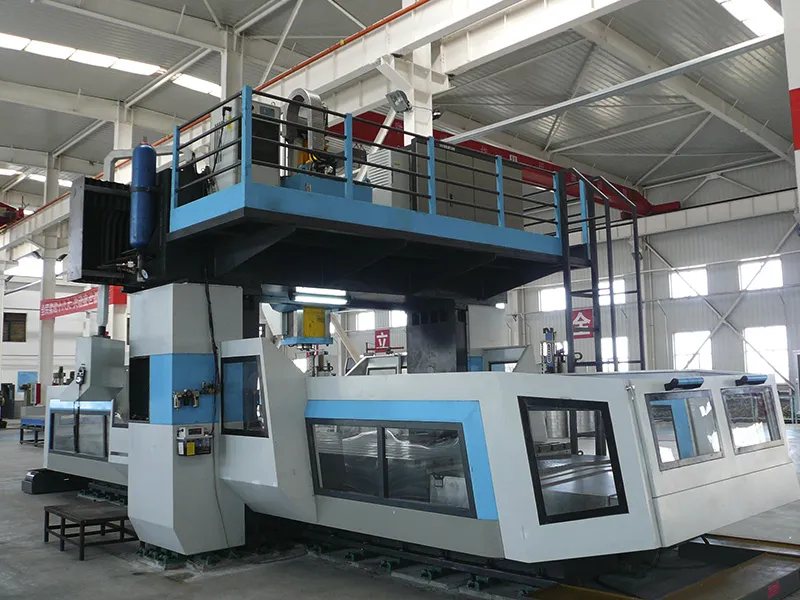El equipo cuenta con un único cabezal de mandrinado y fresado de alta potencia en el travesaño y cuenta con tres ejes de avance CNC (eje X - plataforma de trabajo, eje Y - cabezal de mandrinado/fresado y eje Z - husillo), con posibilidad de conexión en dos o tres ejes. La dimensión del eje X de la mesa de trabajo se puede diseñar según las necesidades del cliente. El ancho del pórtico (eje Y) no supera los 8 metros, la altura no supera los 6 metros y el tamaño del cabezal cuadrado no es inferior a 400x400mm.