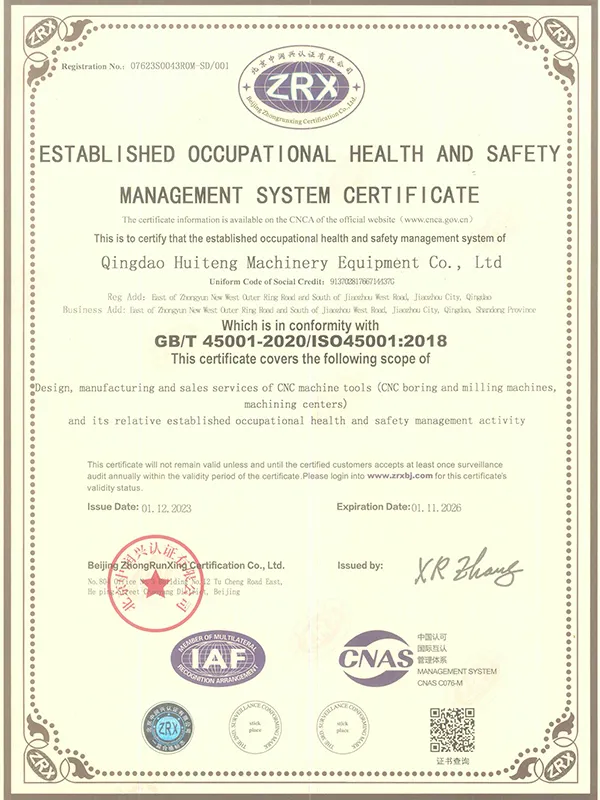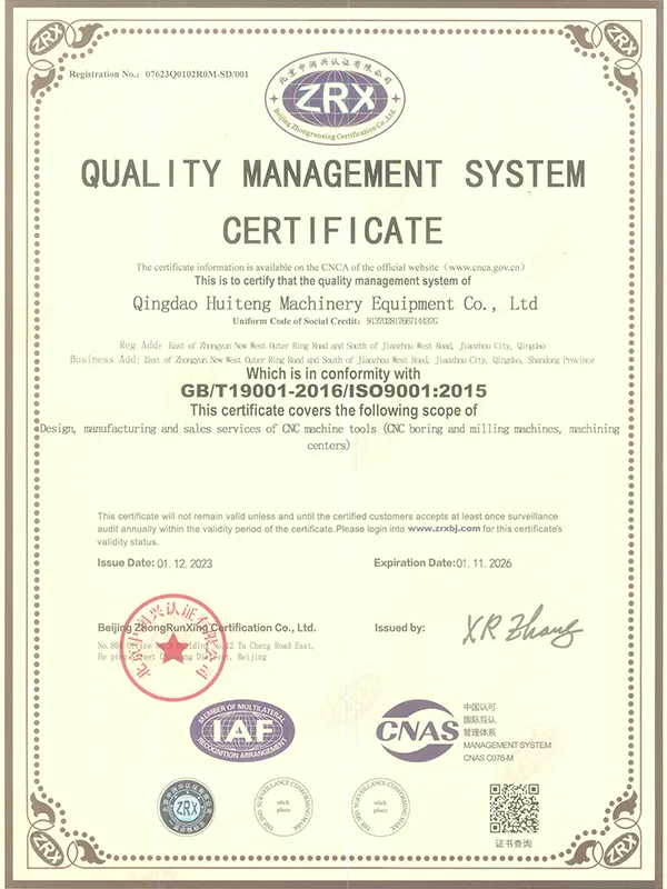Con años de experiencia en el sector, CHTEM ha consolidado sólidas capacidades en el diseño, desarrollo, pruebas y fabricación de una línea completa de mandrinadoras-fresadoras CNC, incluyendo versiones con pantalla digital. Gracias a esta trayectoria, nos hemos posicionado como uno de los principales fabricantes de máquinas herramienta a gran escala en China, con una oferta diversificada de equipos CNC de alta precisión. Nuestro firme compromiso con la calidad está respaldado por la certificación ISO 9001:2000 del sistema internacional de gestión de calidad y por haber superado con éxito la inspección de calidad de productos mecánicos realizada por la Oficina Nacional de Supervisión Técnica.